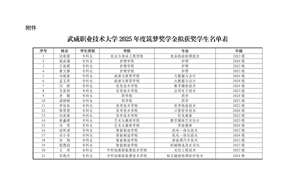 武威職業(yè)技術(shù)大學(xué)關(guān)于2025年度筑夢獎學(xué)金評選結(jié)果的公示