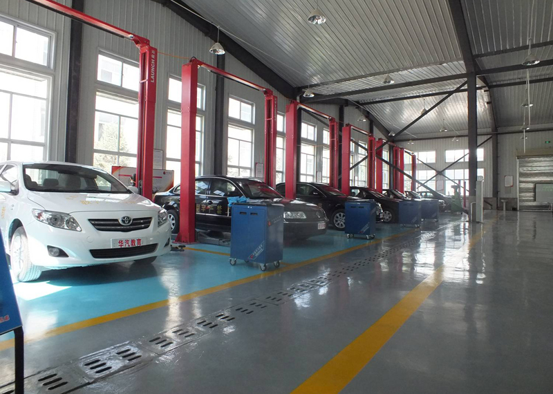 汽車整車檢測維修區(qū):現(xiàn)有教學(xué)車輛14臺,包括大眾、豐田、通用等汽車行業(yè)知名品牌。雙柱式舉升機6臺,四柱式舉升機1臺,用于汽車維護、汽車保養(yǎng)、汽車修理等教學(xué)生產(chǎn)工作。