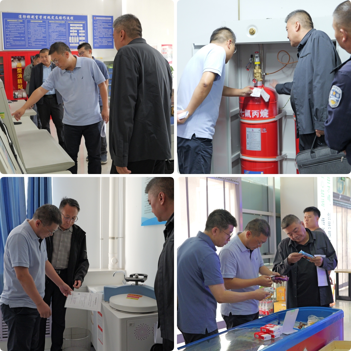 檢查組一行針對校園安全重點領(lǐng)域展開無死角、拉網(wǎng)式檢查。在消防控制室,認真聽取了消控主機聯(lián)動流程講解,仔細查看了消控值班記錄,并隨機抽取宿舍樓宇進行消控演示操作;在信息技術(shù)學院、農(nóng)業(yè)與食品工程學院等實驗實訓室,詳細檢查實驗實訓記錄臺賬、用電安全情況;在醫(yī)學類實驗室詳細核查?;反鎯芾砼_賬、實驗室安全防護設施以及安全管理制度落實情況;在學生食堂和校內(nèi)超市,重點檢查燃氣使用、食品加工流程、衛(wèi)生管理制度執(zhí)行情況以及有無違規(guī)向?qū)W生出售煙酒、違規(guī)電器和銷售“三無”食品等情況;在綜合實訓樓施工現(xiàn)場,逐一對重點防火部位,消防安全警示標志設置情況,消防器材配備和完好情況以及施工區(qū)域與校園硬分隔情況等進行全面巡查。檢查中聽取相關(guān)負責人對相關(guān)工作的匯報,詳細詢問了“雙節(jié)”期間的管理措施及值班安排,對檢查中發(fā)現(xiàn)的問題現(xiàn)場提出整改意見,要求落實落細,確保準備到位、防范到位、安全到位。