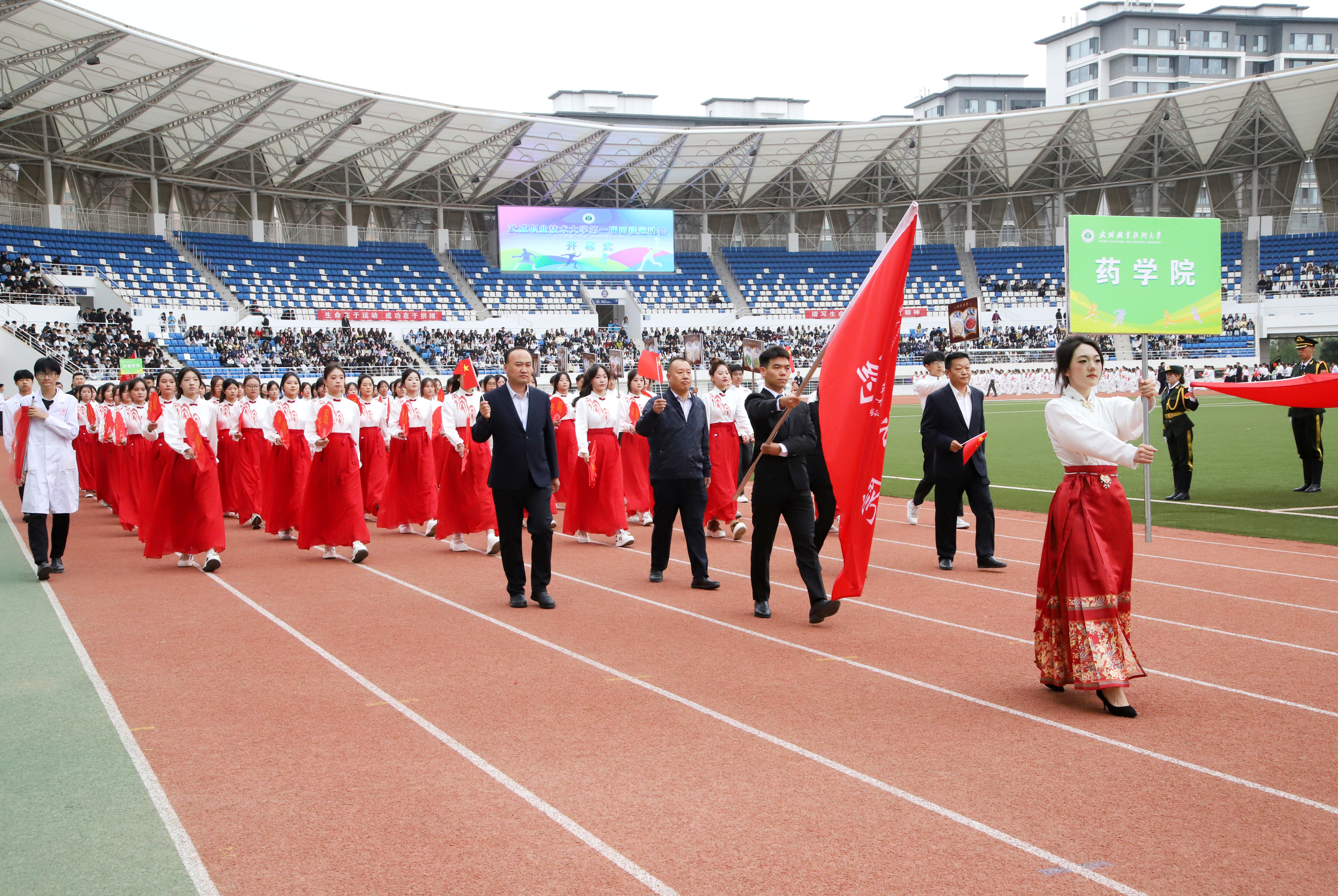 伴隨著激昂的《運(yùn)動(dòng)員進(jìn)行曲》,國(guó)旗護(hù)衛(wèi)隊(duì)、彩旗隊(duì)、裁判員隊(duì)伍、各學(xué)院方陣依次入場(chǎng),隊(duì)列步伐整齊有力,口號(hào)堅(jiān)定嘹亮,充分展示了師生良好的精神風(fēng)貌。