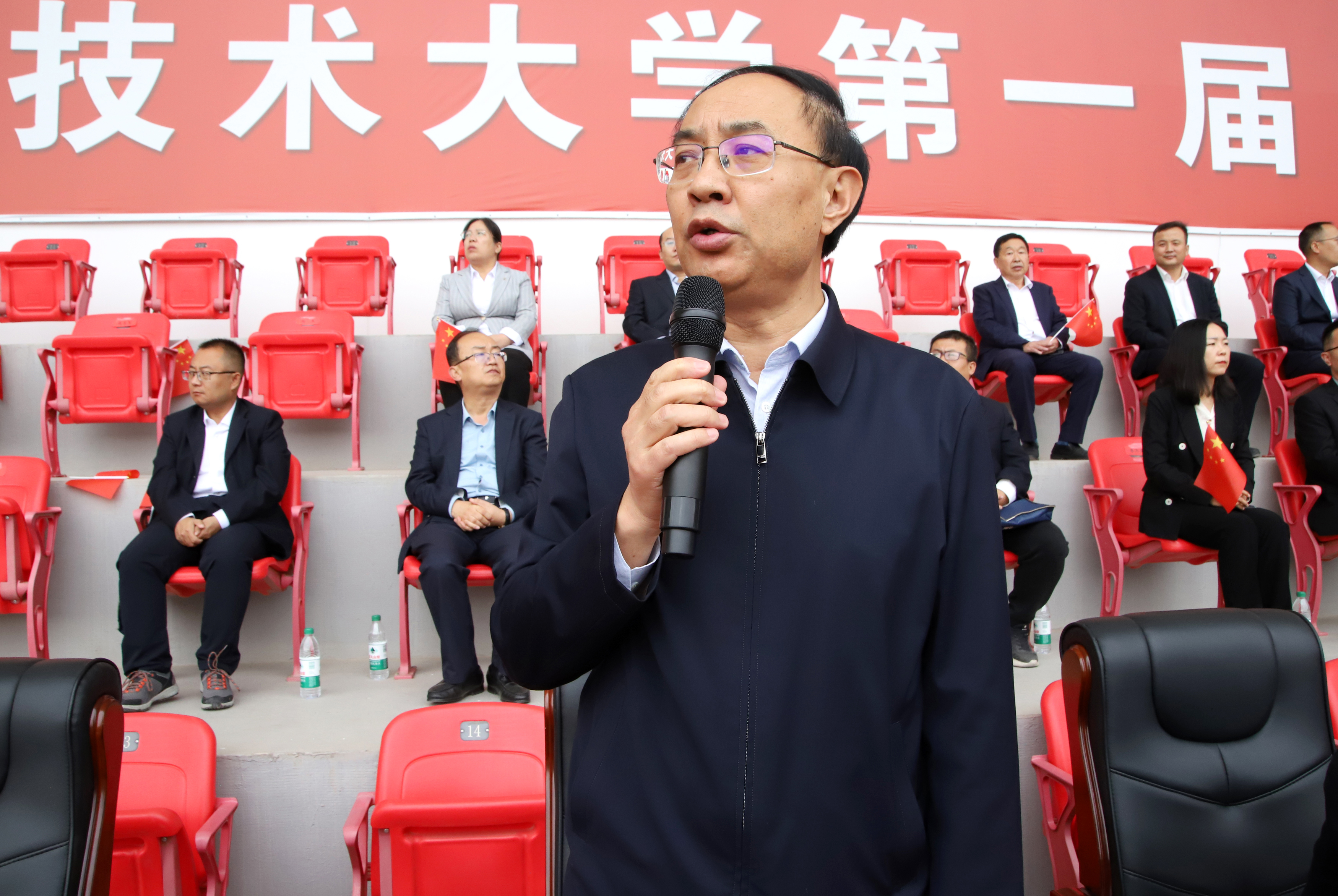 李海軍致開(kāi)幕辭,他對(duì)運(yùn)動(dòng)會(huì)的召開(kāi)表示祝賀,向全體運(yùn)動(dòng)員、裁判員、教練員表示問(wèn)候,向精心籌備賽會(huì)的師生表示感謝。他指出,體育是教育的重要組成部分,是立德樹(shù)人的重要載體,學(xué)校始終堅(jiān)持五育并舉、全面發(fā)展的育人理念,將體育育人作為錘煉意志、健全人格和涵養(yǎng)“工匠精神”的重要途徑。他希望廣大師生堅(jiān)持以體育人、以體育智、以體育心,在奔跑跳躍間夯實(shí)成長(zhǎng)根基;堅(jiān)持養(yǎng)成鍛煉習(xí)慣,擁抱健康生活,在持之以恒中積蓄?yuàn)^進(jìn)能量;堅(jiān)定傳承拼搏精神,勇?lián)鷷r(shí)代使命,在新征程上共繪發(fā)展新篇。同時(shí),他號(hào)召全校師生將“更高、更快、更強(qiáng)、更團(tuán)結(jié)”的體育精神,熔鑄到日常的學(xué)習(xí)和工作中,以海納百川的開(kāi)放胸襟兼收并蓄,以自立自信的奮斗姿態(tài)勇攀高峰,在“創(chuàng)建西部示范、全國(guó)一流職業(yè)技術(shù)大學(xué)”的新征程中展現(xiàn)更大作為!