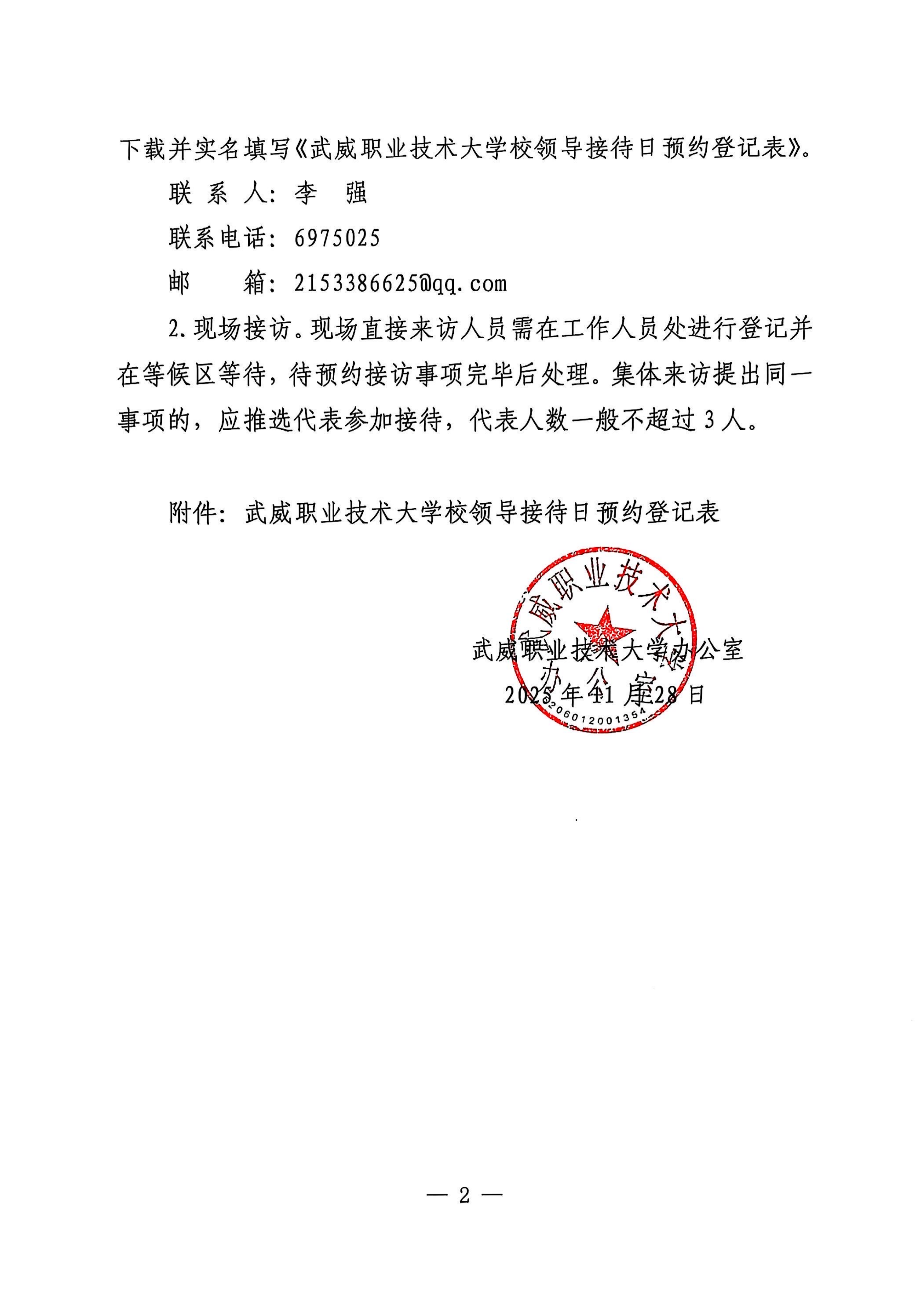 關(guān)于第十五周校領(lǐng)導接待日安排的通知