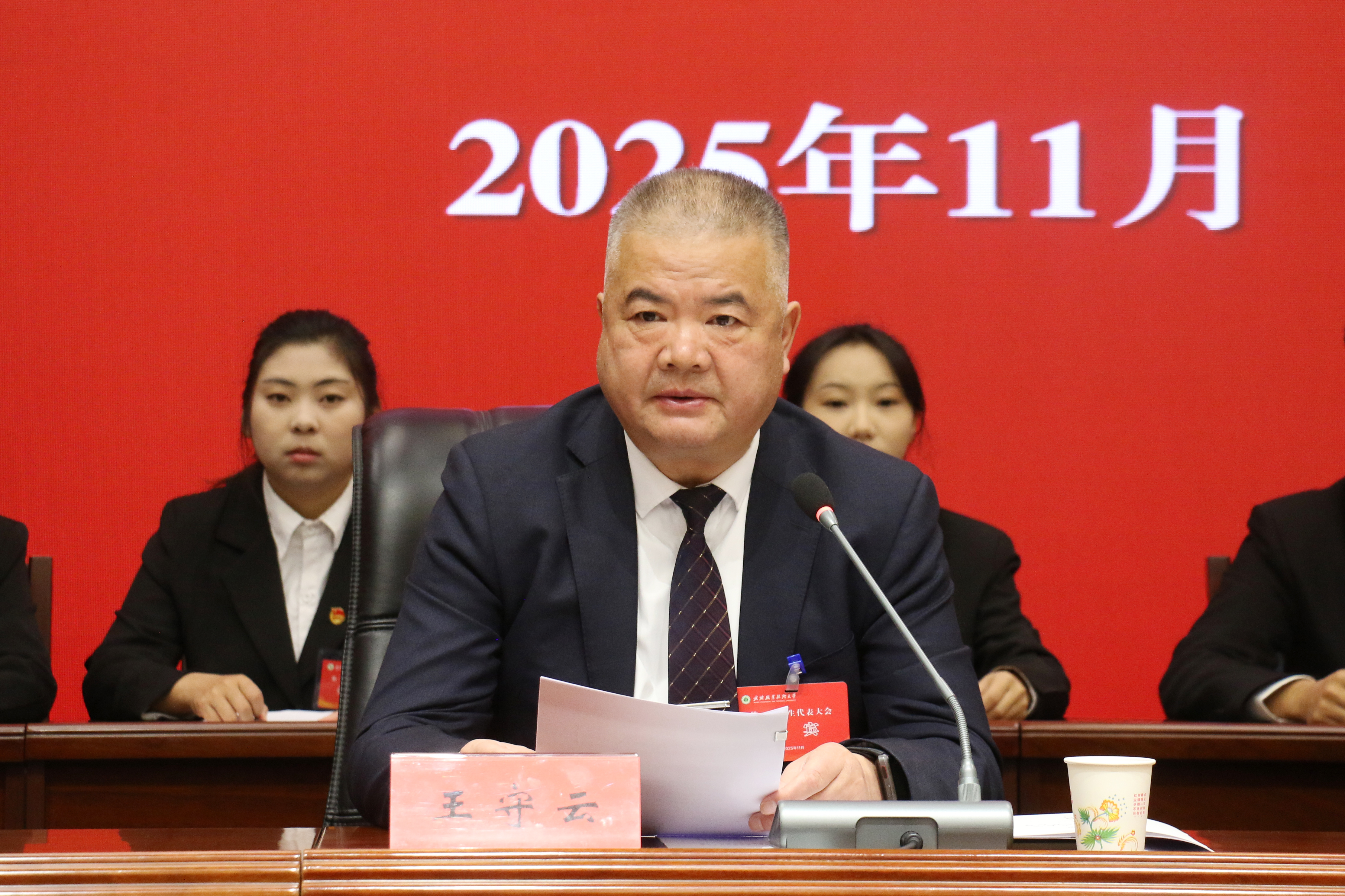 王守云代表學(xué)校黨委對(duì)大會(huì)召開表示熱烈祝賀,向全校青年學(xué)生致以親切問候。他充分肯定了過去一年全校各級(jí)學(xué)生組織所取得的突出成績,并提出了三點(diǎn)希望:一是強(qiáng)化思想引領(lǐng),用理想信念校準(zhǔn)青春航向。讓聽黨話、跟黨走的信念成為學(xué)校最鮮明的青春底色。二是勇?lián)鷷r(shí)代使命,用專業(yè)精進(jìn)彰顯青春底氣。廣大青年要錘煉過硬本領(lǐng),勇于在實(shí)訓(xùn)實(shí)戰(zhàn)、重大比賽中挑重?fù)?dān)、當(dāng)先鋒,努力成長為堪當(dāng)民族復(fù)興大任的時(shí)代新人。三是發(fā)揮橋梁作用,用暖心服務(wù)彰顯擔(dān)當(dāng)作為。廣泛收集同學(xué)意見,提出高質(zhì)量提案,為學(xué)校完善治理體系、提升育人水平貢獻(xiàn)青春的智慧和力量。
