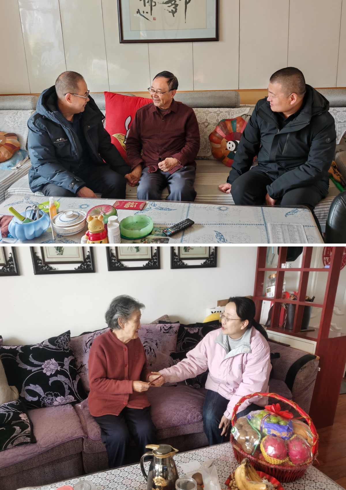 走訪過程中,校領導與老同志們促膝長談、親切交流,關切地詢問他們的身體健康狀況、日常生活起居及實際困難,細心叮囑他們注意防寒保暖、保重身體。同時,校領導向老同志們重點介紹了學校過去一年在專業(yè)建設、人才培養(yǎng)、科研創(chuàng)新、校園治理等方面取得的突破性進展和顯著成效,認真傾聽他們對學校發(fā)展的意見建議,對他們?yōu)閷W校建設發(fā)展傾注的心血、付出的辛勤努力和作出的重要貢獻表示衷心的感謝和崇高的敬意。